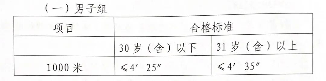 面试合格者全部参加体能测试,时间和地点另行通知。体能测试标准如下: